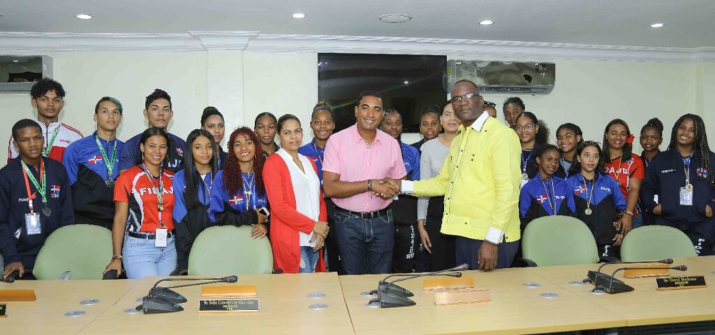 Los Alcarrizos.- El alcalde Cristian Encarnación recibió la delegación de Los Alcarrizos que participó en el Torneo Internacional de Vóleibol que se llevó a cabo del 22 al 24 de julio en Guatapé-Colombia, quienes se alzaron con el segundo lugar en masculino y el tercero por el equipo femenino.